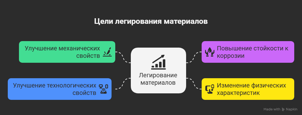 Легированием создают улучшенные версии известных сплавов с заданными свойствами, которые необходимы в промышленности или строительстве.